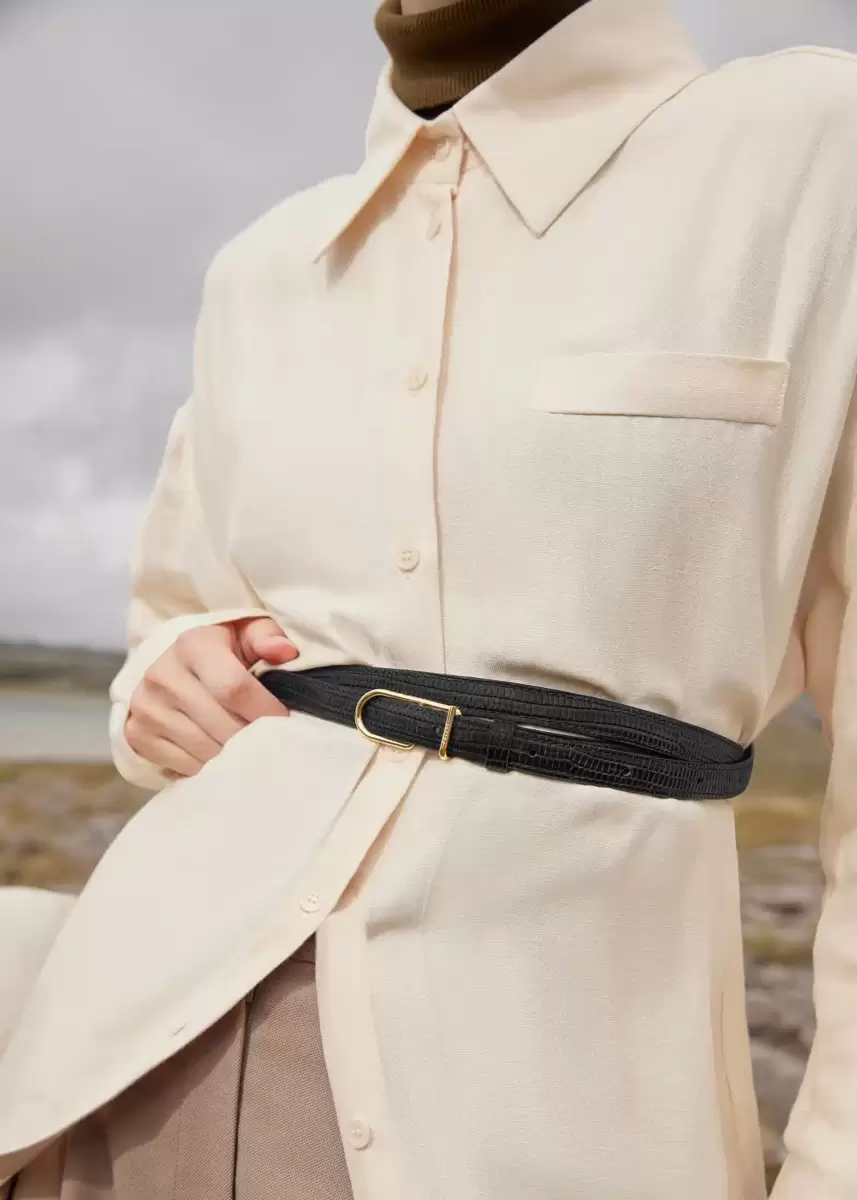 Thin Umi Belt – Black lizard print