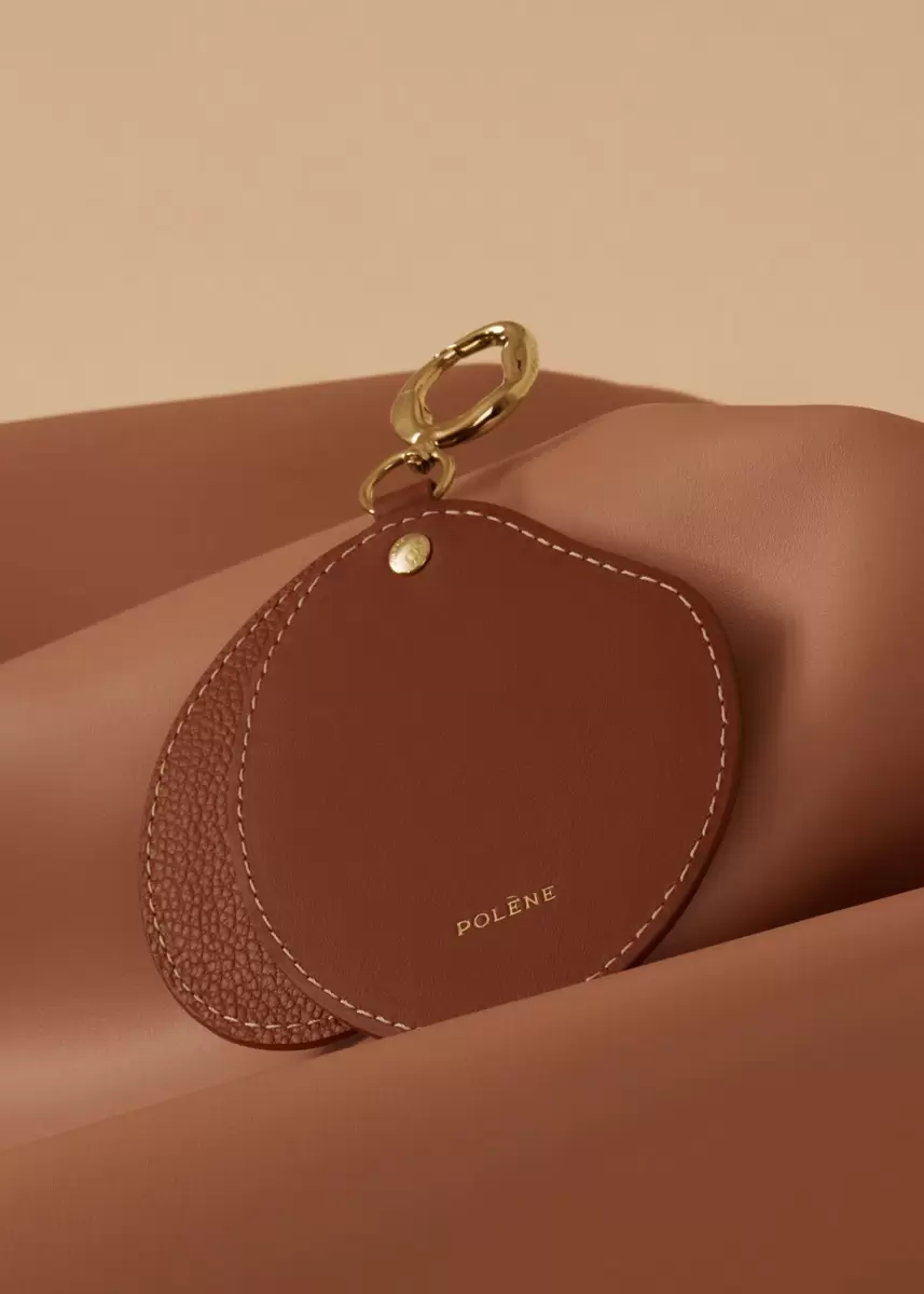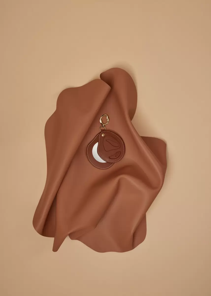 Inspired by mountain relief cartography, the “Atla” mirror recreates these patterns in a patchwork design using leather off-cuts from Polène collections.