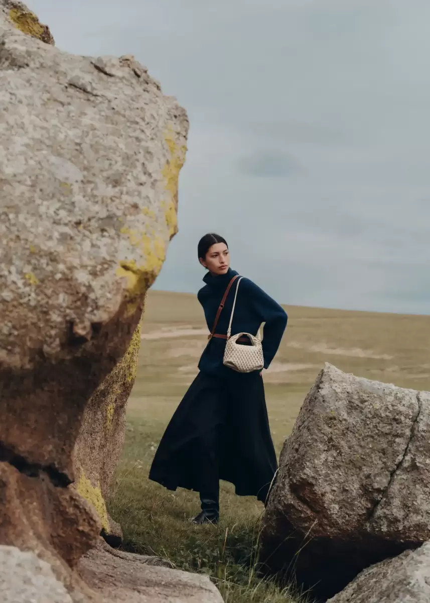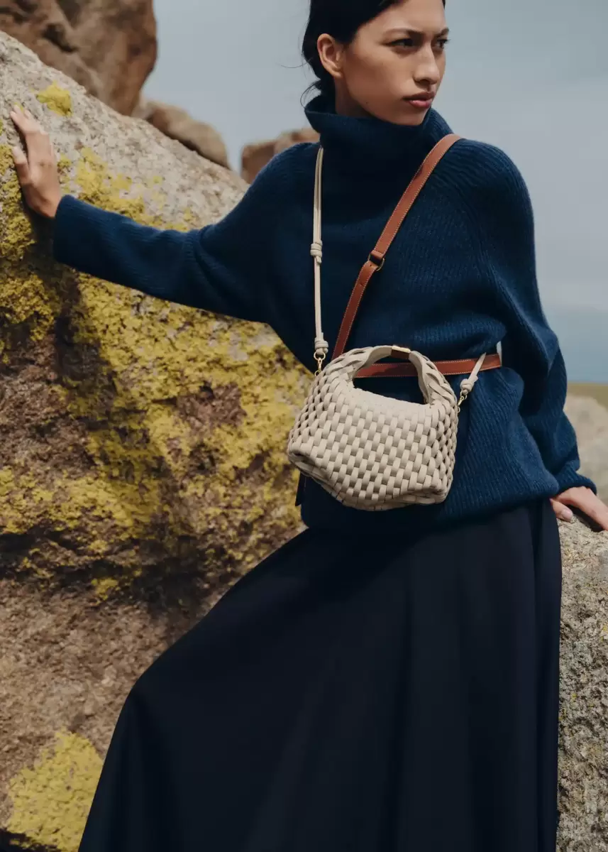 - Hand-knotted shoulder strap.