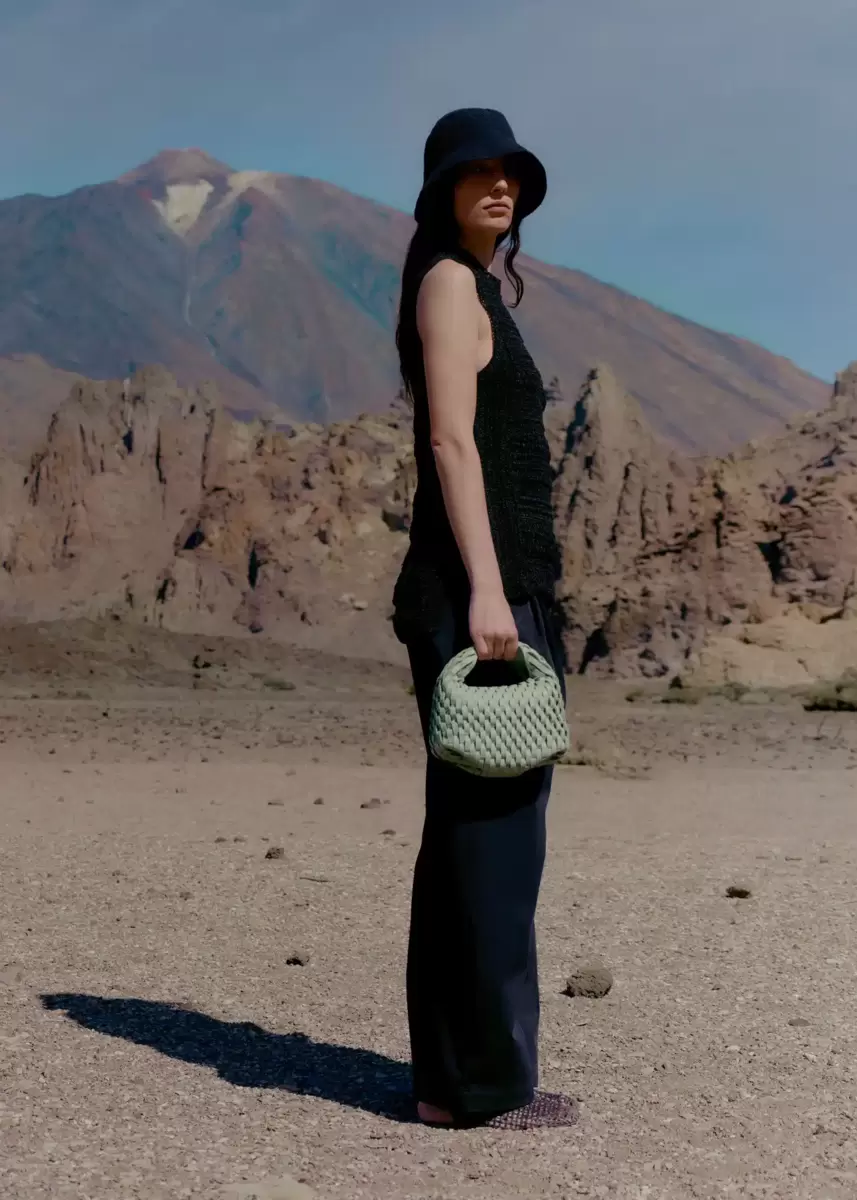 • Hand-knotted shoulder strap.