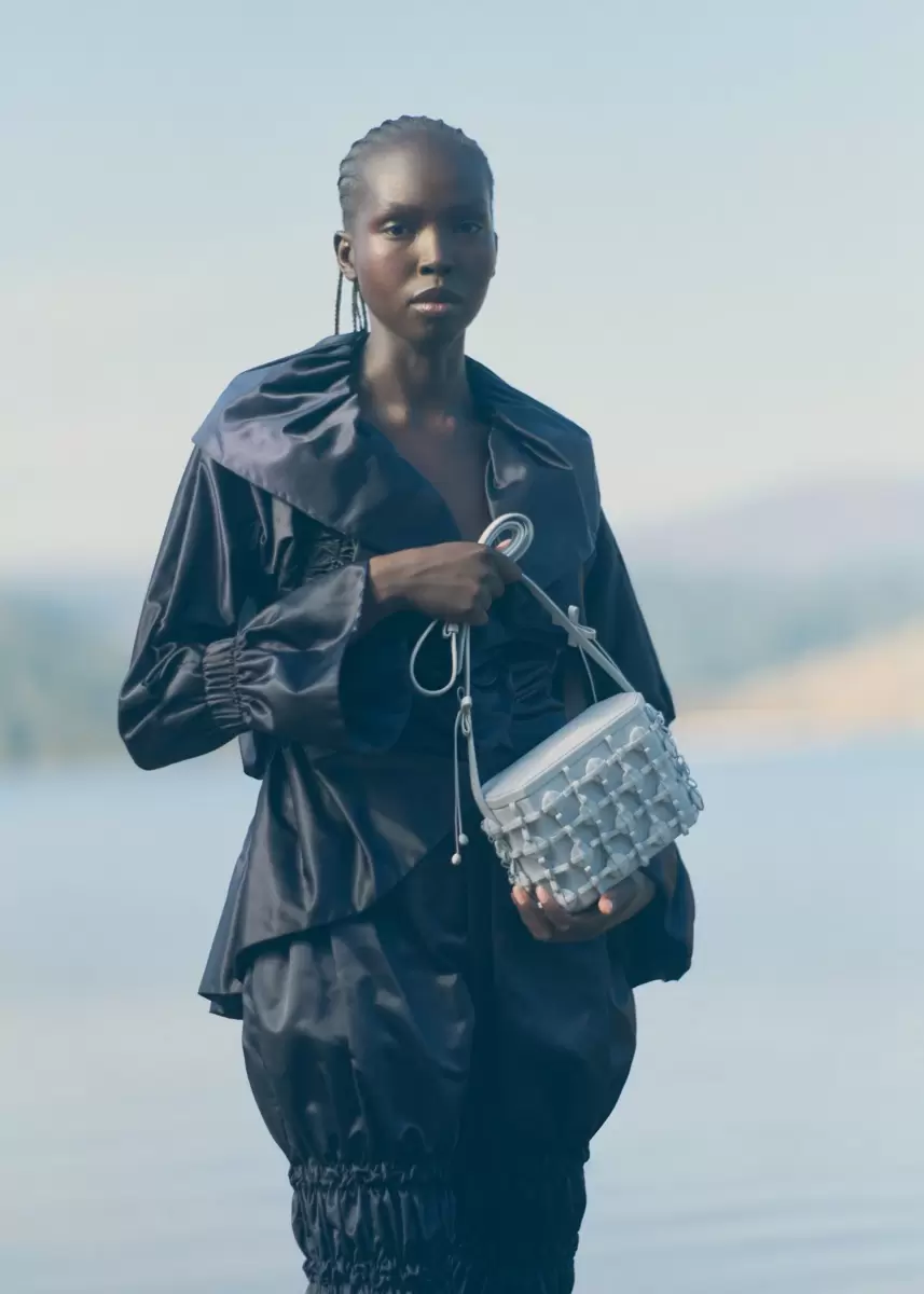 Unveiled at Paris Fashion Week, the “Button Bow Box” is the fruit of an encounter between Róisín Pierce’s feminine, poetic universe and Polène’s signature leather craft.