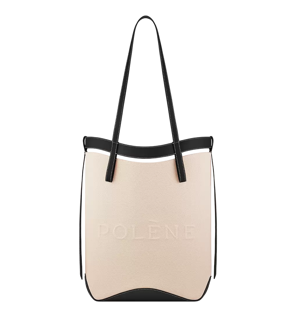 The “Ilo” tote bag combines functionality with leather detailing. Its cotton fabric is held in place by a series of loops and creates soft lines highlighted by thin strips of leather. Its vertical shape means that it can conveniently hold a laptop and A4 paper. Polène’s logo is elegantly imprinted with tone-on-tone high-frequency debossing.