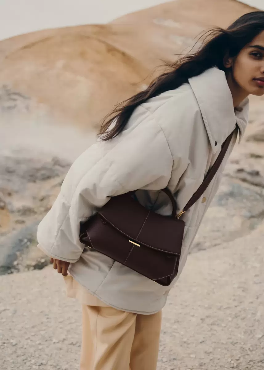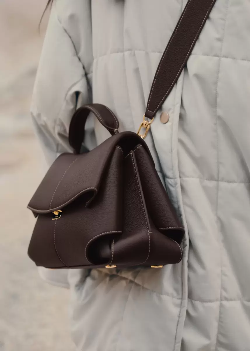 • Polène branded clasp and organically designed bottom studs bearing the Polène logo.
