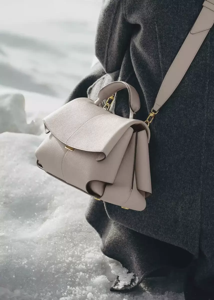 • Polène branded clasp and organically designed bottom studs bearing the Polène logo.