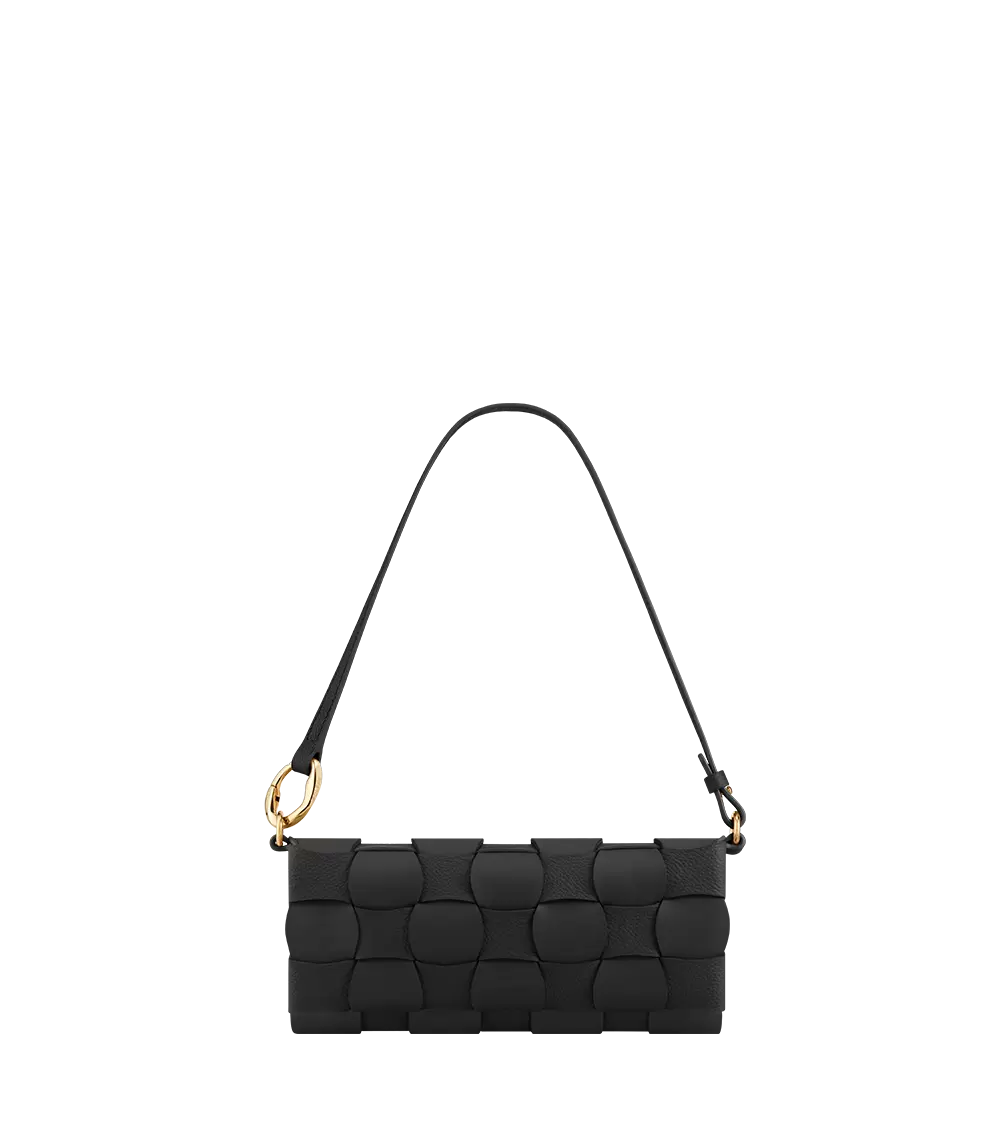 The Neiti model reinterprets an iconic leather goods braiding technique by softening it with wave-like undulating lines, along with interconnecting smooth and grained tone-on-tone leathers. Clever folds give the mini-bag its shape and volume.