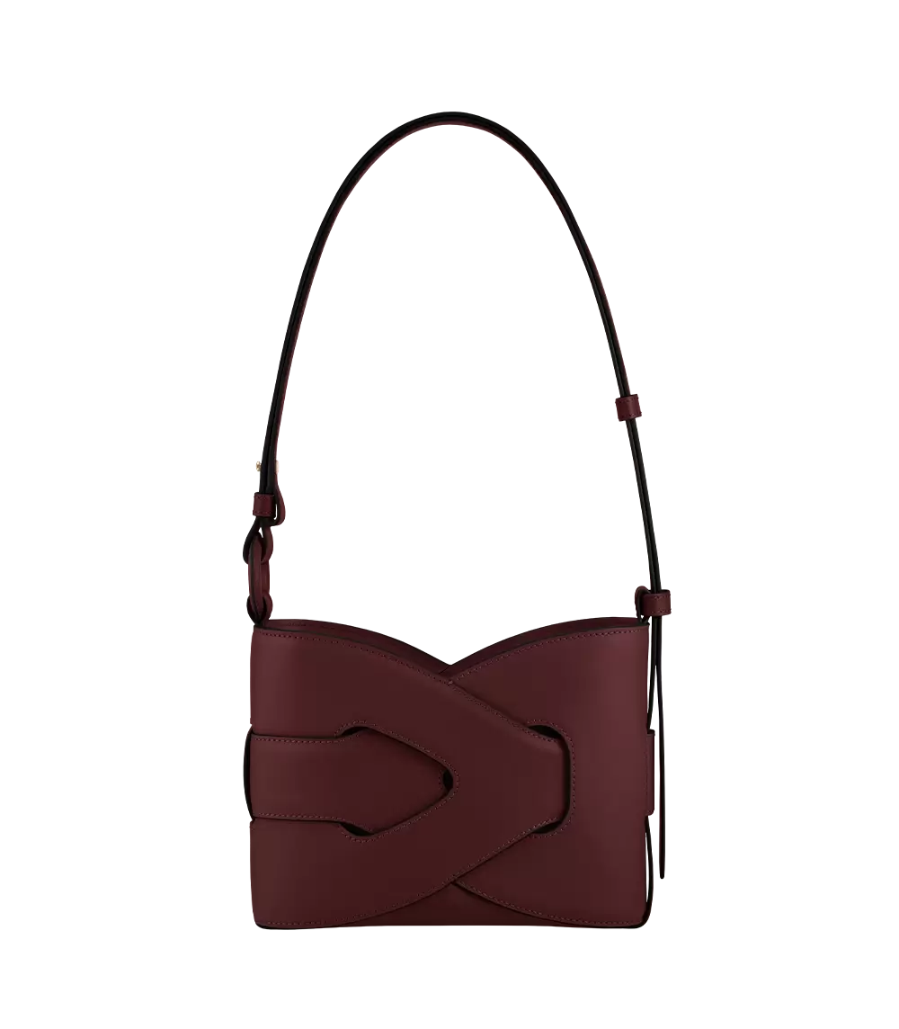 Composed of two matching and intertwined leather modules, the “Nodde” model is a bag with interlaced lines, highlighted by meticulous stitching and perfect symmetry.