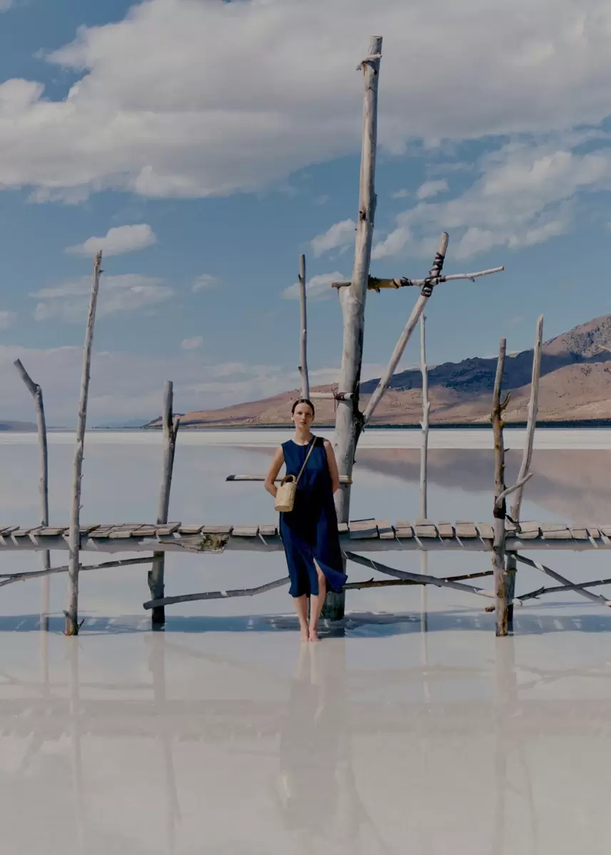 Formed by two interwoven leather pieces, the “Nodde” bucket bag creates the illusion of continuous interlacing. Its name is inspired by the French word “noeud”, meaning “knot.”