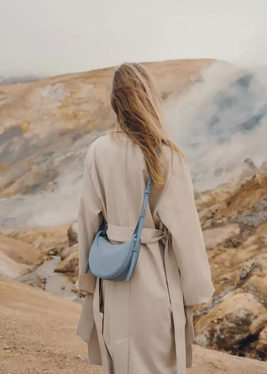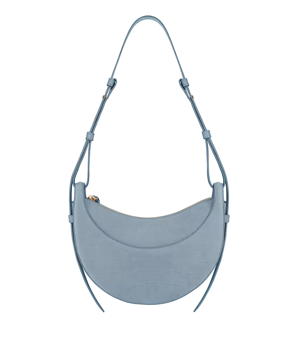 With its rounded shape, foam padding, and hand-stitching, the “Numéro Dix” is a nod to the equestrian styling of saddlery. Its half-moon design highlights juxtaposing curves.