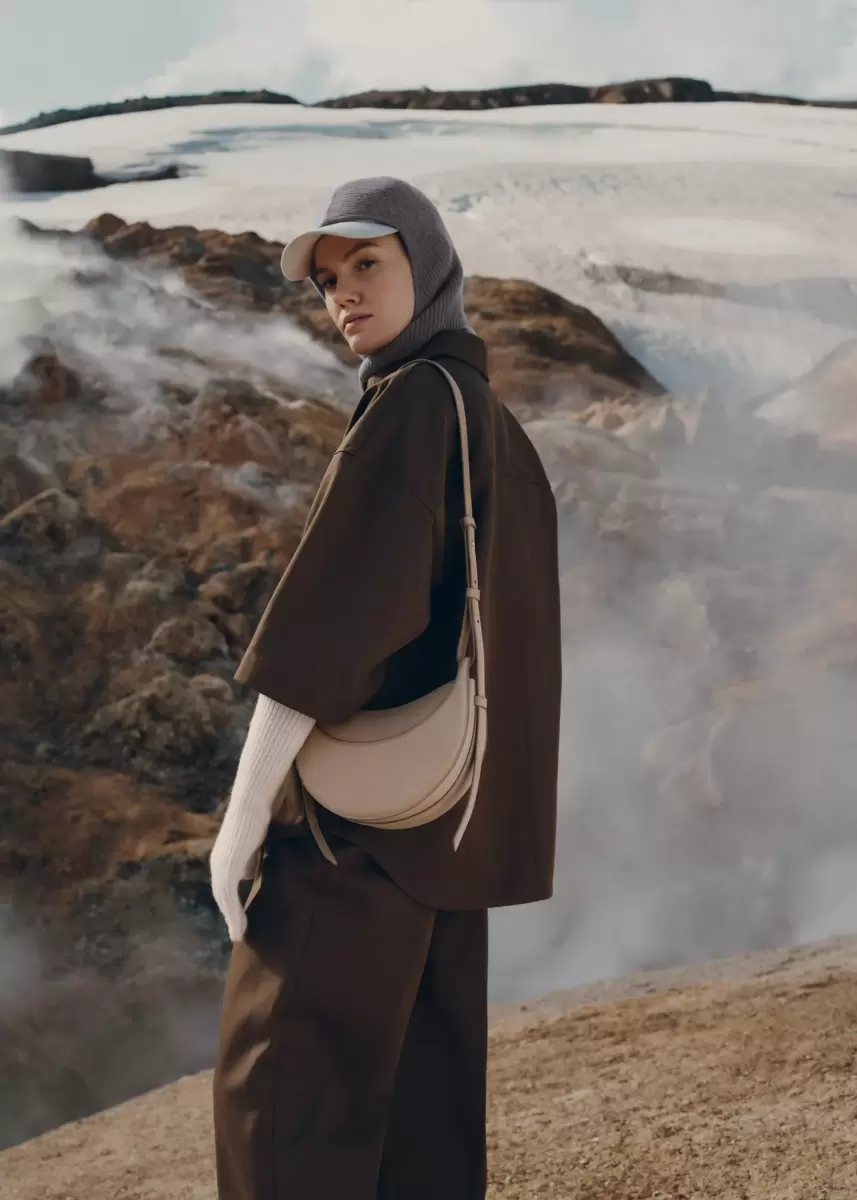 With its rounded shape, foam padding, and hand-stitching, the “Numéro Dix” is a nod to the equestrian styling of saddlery. Its half-moon design highlights juxtaposing curves.