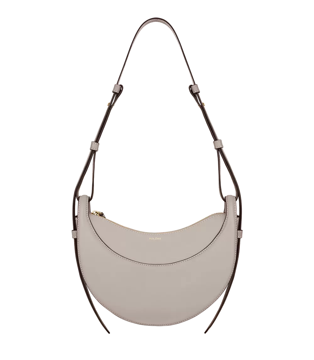 With its rounded shape, foam padding, and hand-stitching, the “Numéro Dix” is a nod to the equestrian codes of saddlery. Its half-moon design highlights juxtaposing curves.