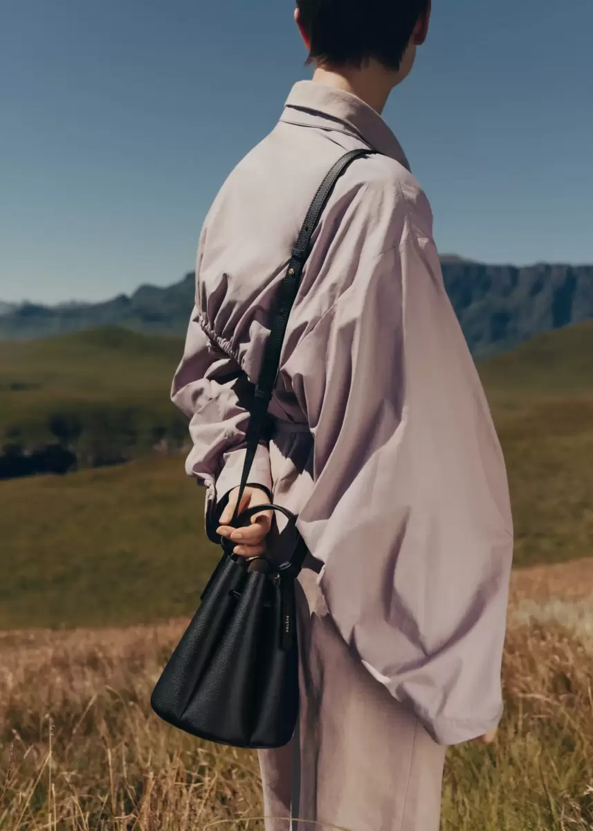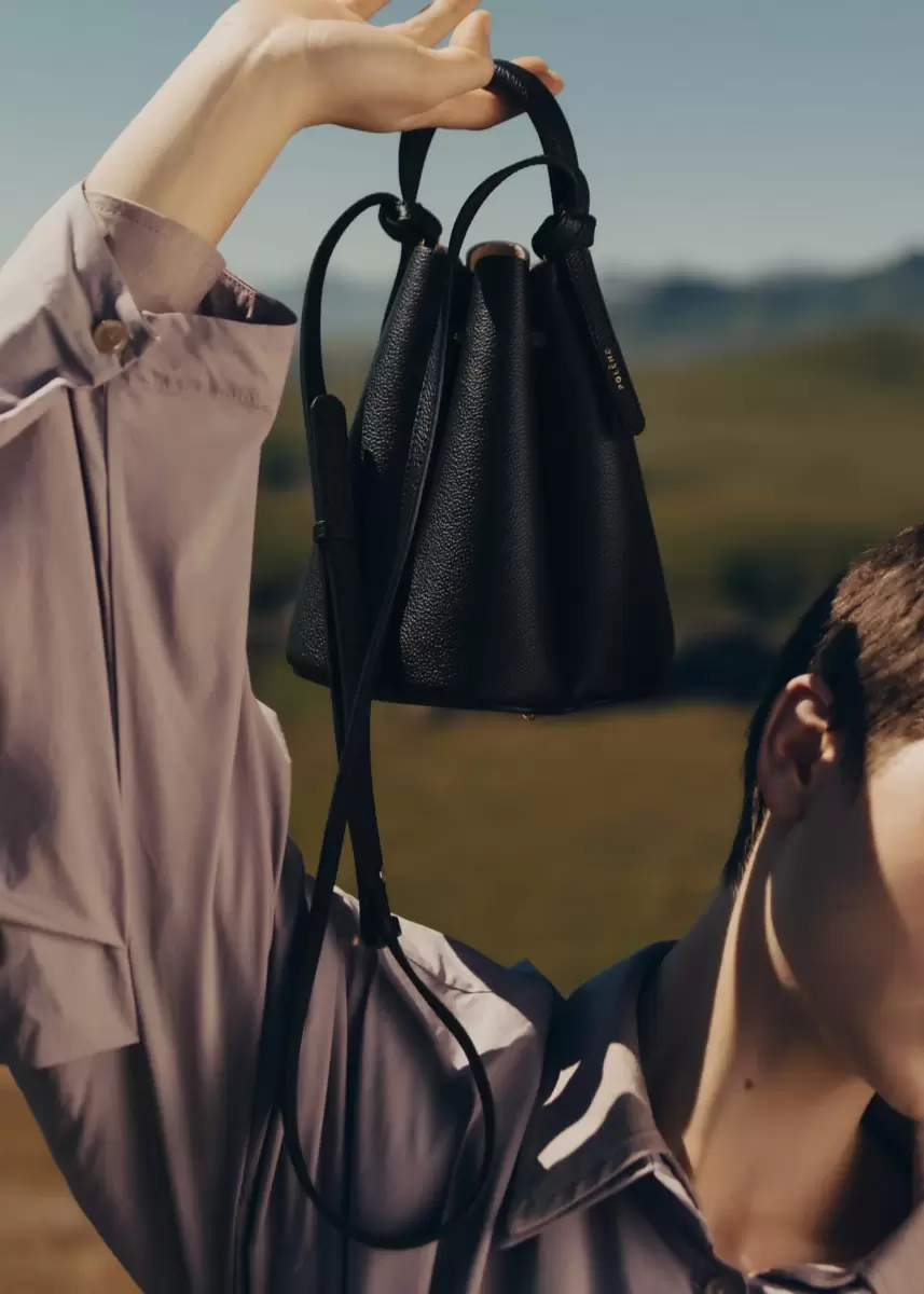 The “Numéro Huit Mini” is a compact, flower-like bucket bag. Its sculptural lines are obtained using waves of leather to create a fluted look.