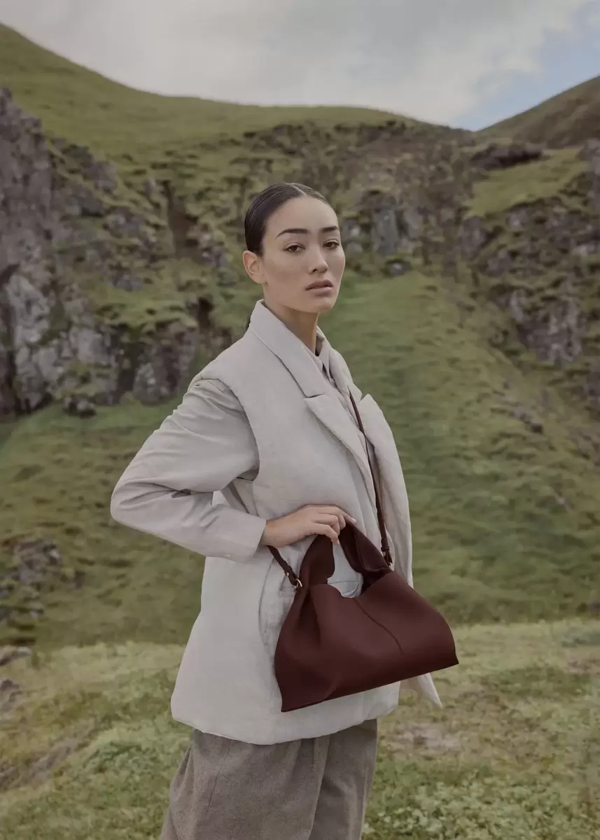 The “Numéro Neuf” features an organic design that strikes the right balance between flexibility and hold. Its draped leather is held in place by hand stitching.