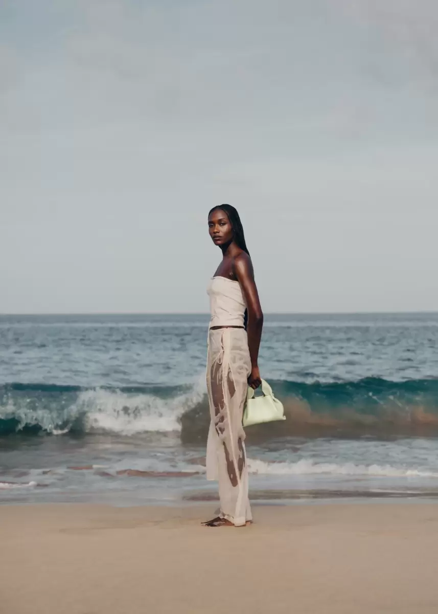 The “Numéro Neuf Mini” features an organic design that strikes the right balance between flexibility and hold. Its draped leather is held in place by hand stitching.