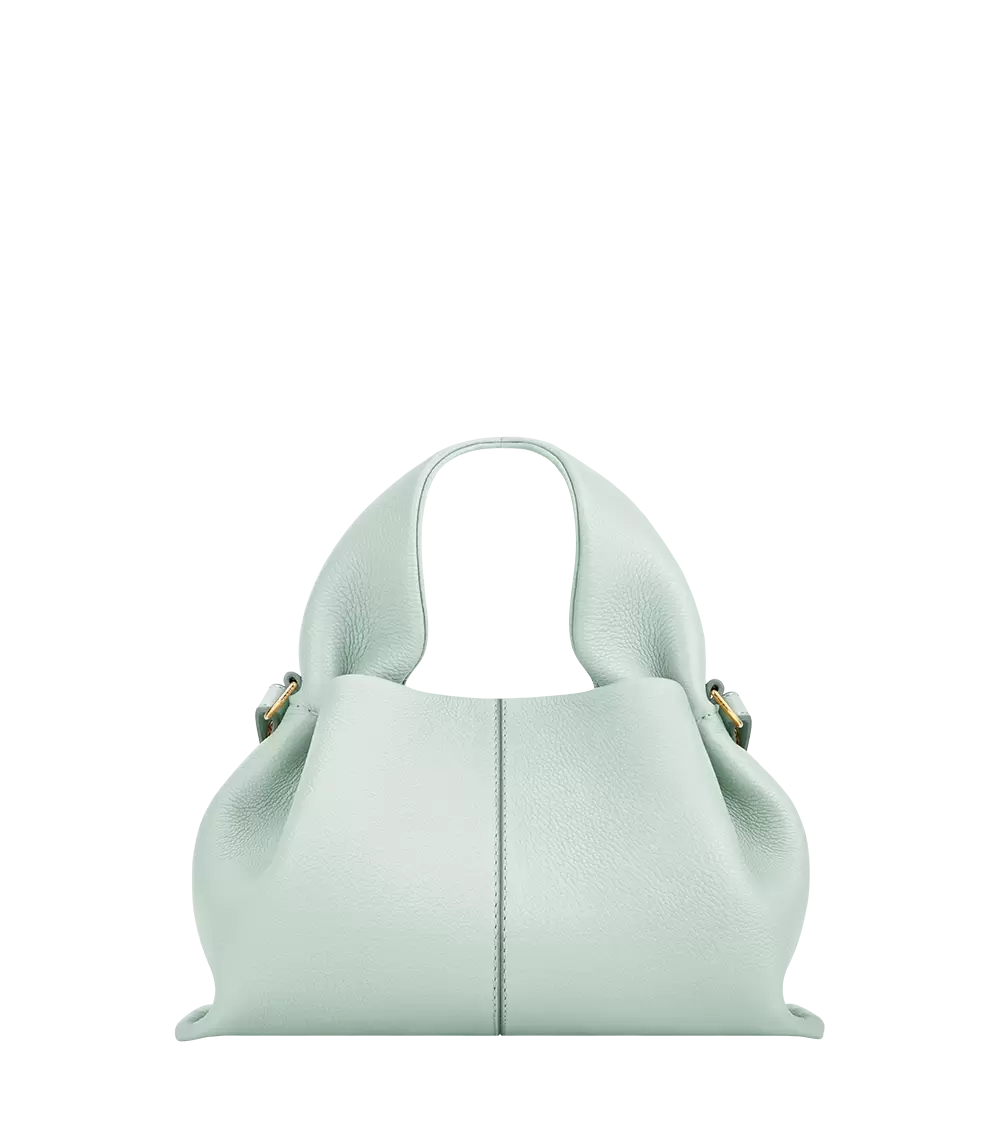 The “Numéro Neuf Mini” features an organic design that strikes the right balance between flexibility and hold. Its draped leather is held in place by hand stitching.