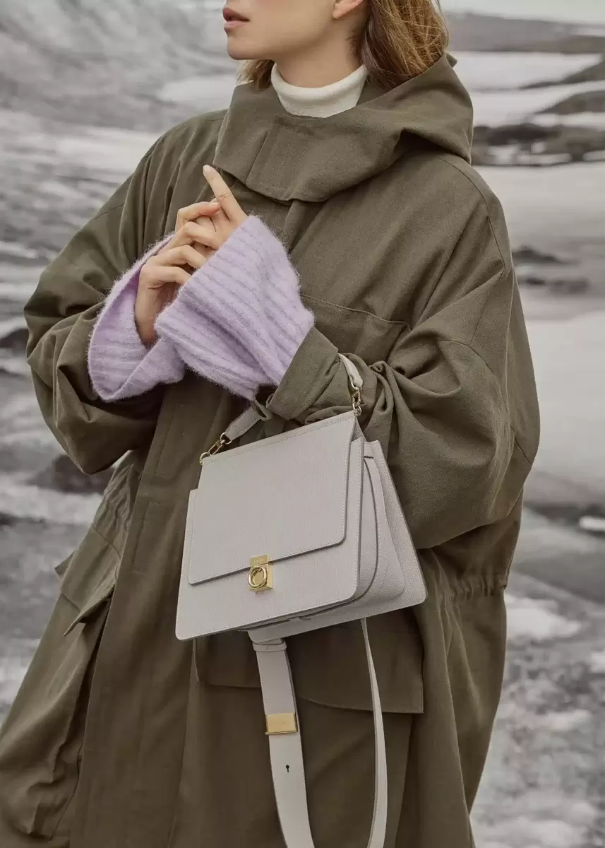 The “Numéro Sept” is a structured bag that combines leather and meticulous jewelry work with the Polène-engraved snap hooks and signature clasp.