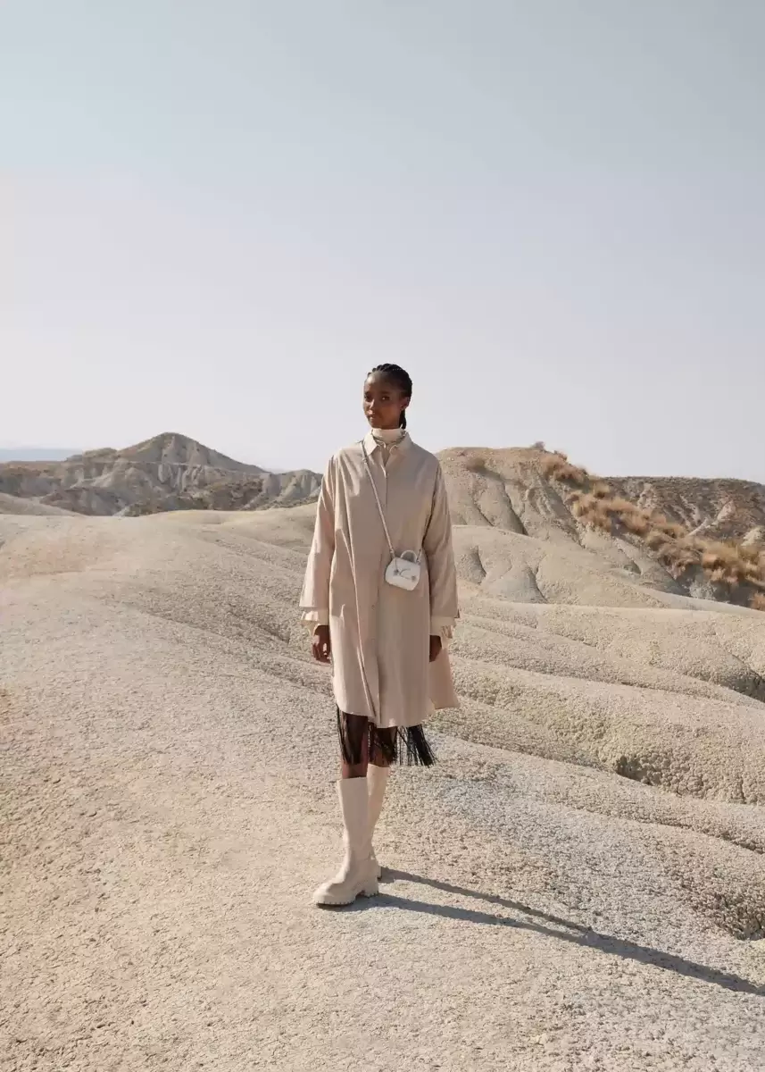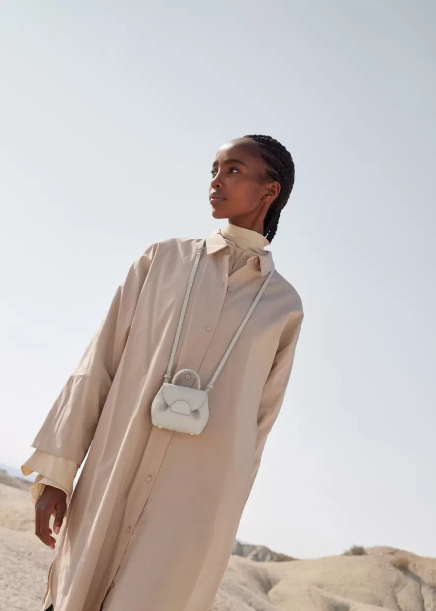 Made from leather off-cuts, the “Numéro Un Micro” is a miniature version of Polène’s flagship model with its folds, half-moon tongue, bottom studs, and patch pocket on the back.
