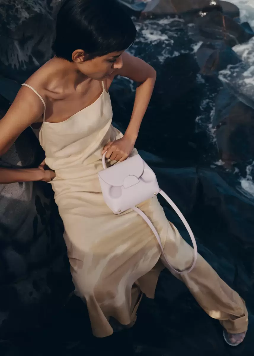 A reinterpretation of Polène’s flagship model, the “Numéro Un Nano” is instantly recognizable thanks to the blended curves and folds that give this model its signature shape.