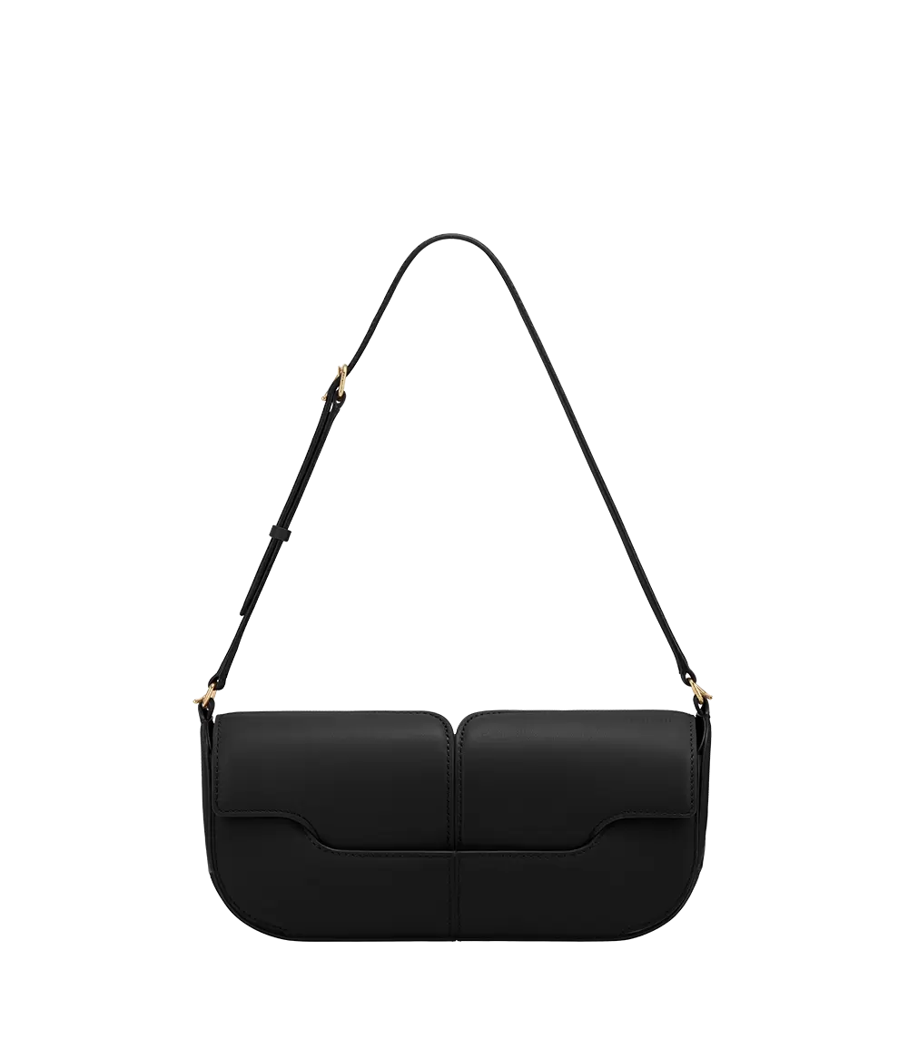 The Osmo model’s design is constructed using mirrored leather segments that interlock to form a symmetrical whole.nWith its flap closure, this finely made bag is cut from smooth nappa calf leather, known for its natural beauty and distinctive feel, which covers the bag’s interior and exterior. The adjustable shoulder strap can be worn short, “baguette” style.