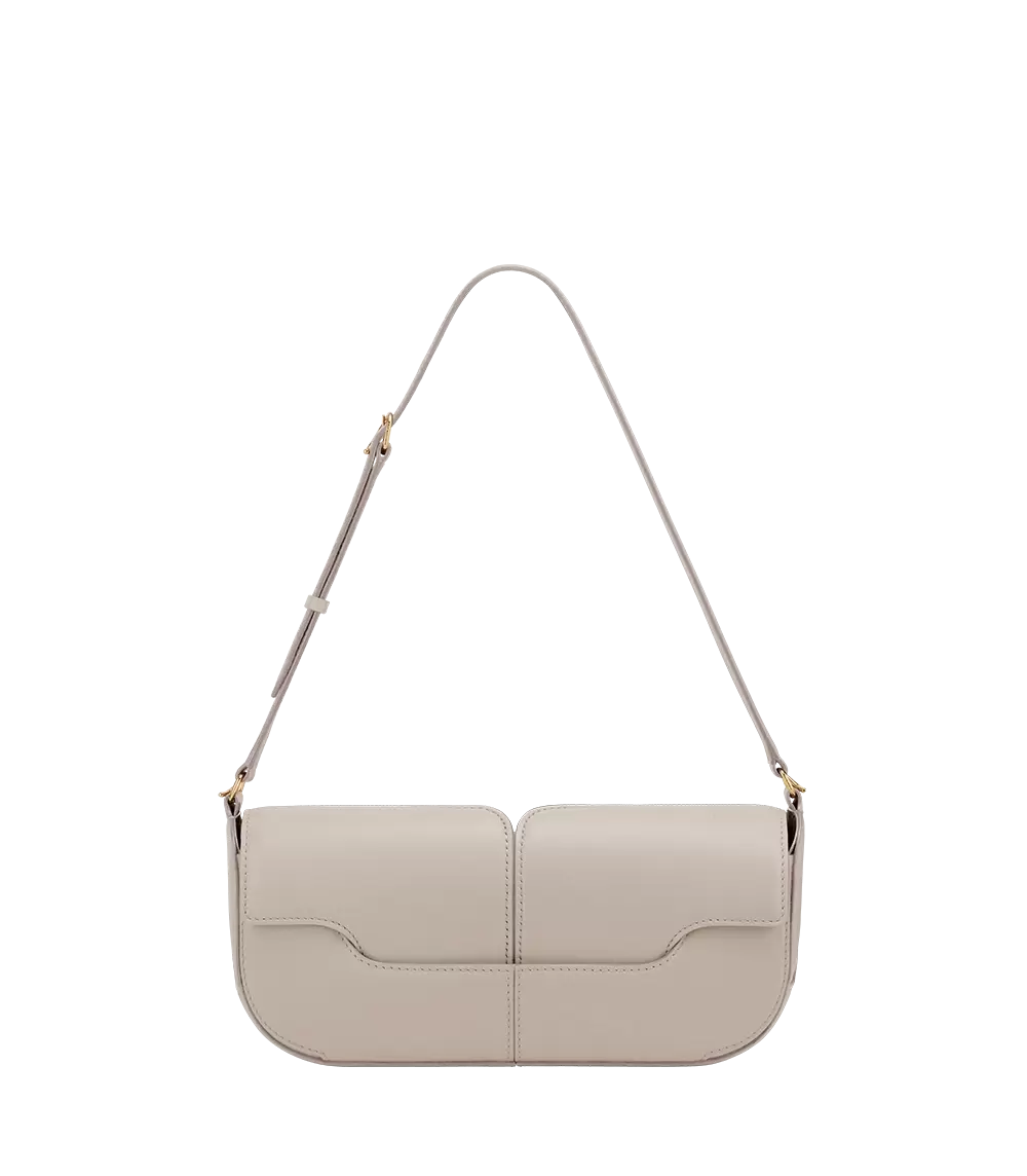 The Osmo model’s design is constructed using mirrored leather segments that interlock to form a symmetrical whole.nWith its flap closure, this finely made bag is cut from smooth nappa calf leather, known for its natural beauty and distinctive feel, which covers the bag’s interior and exterior. The adjustable shoulder strap can be worn short, “baguette” style.