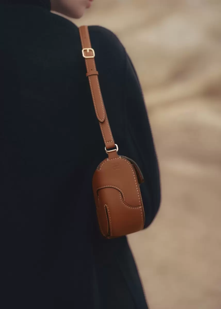The Osmo model’s design is constructed using mirrored leather segments that interlock to form a symmetrical whole. With its flap closure, this finely made bag is cut from smooth nappa calf leather, known for its natural beauty and distinctive feel, which covers the bag’s interior and exterior. The adjustable shoulder s