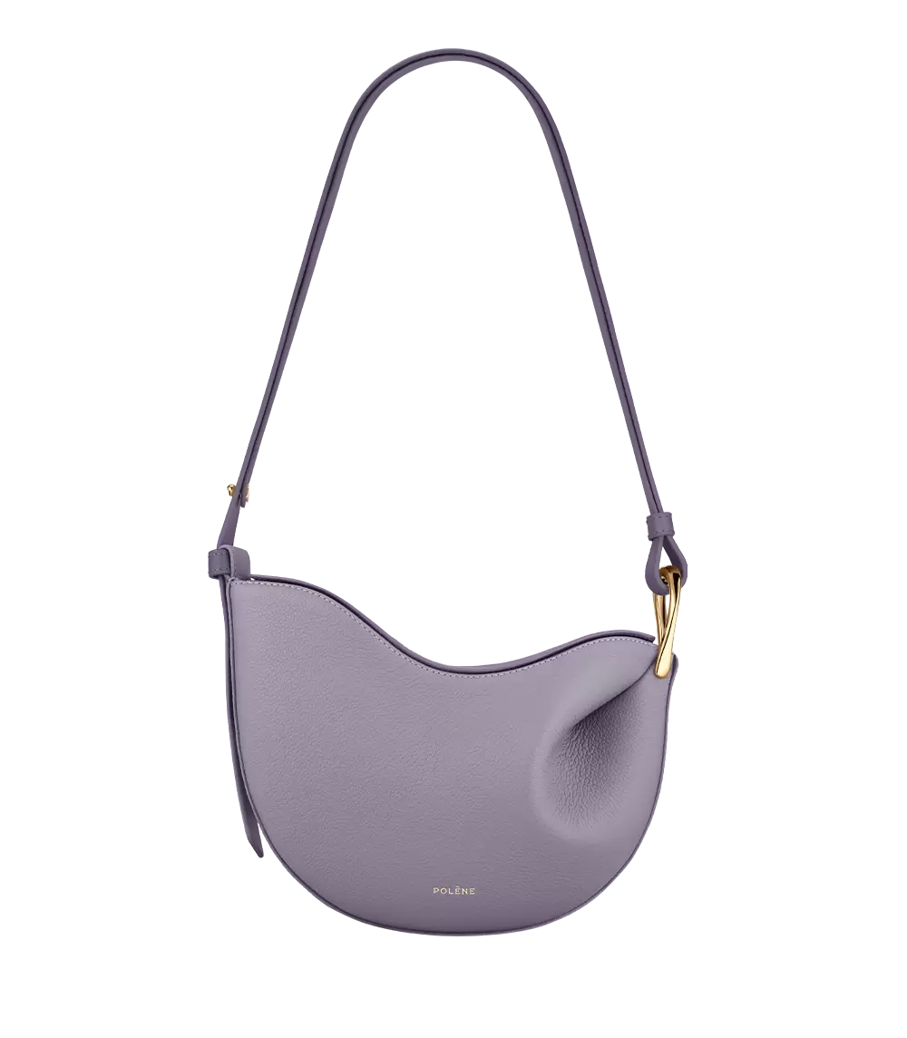 Obtained by modeling the leather on a wooden mould, the “Tonca” bag’s roundness is shaped by its folds that blend into a twisted metal buckle. The bag’s contrasting body and shoulder strap feature smooth and textured leathers.