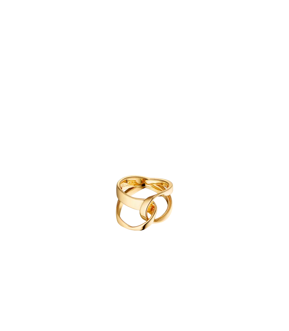 - Two interwoven organic hoops united in an endlessly undulating ring.