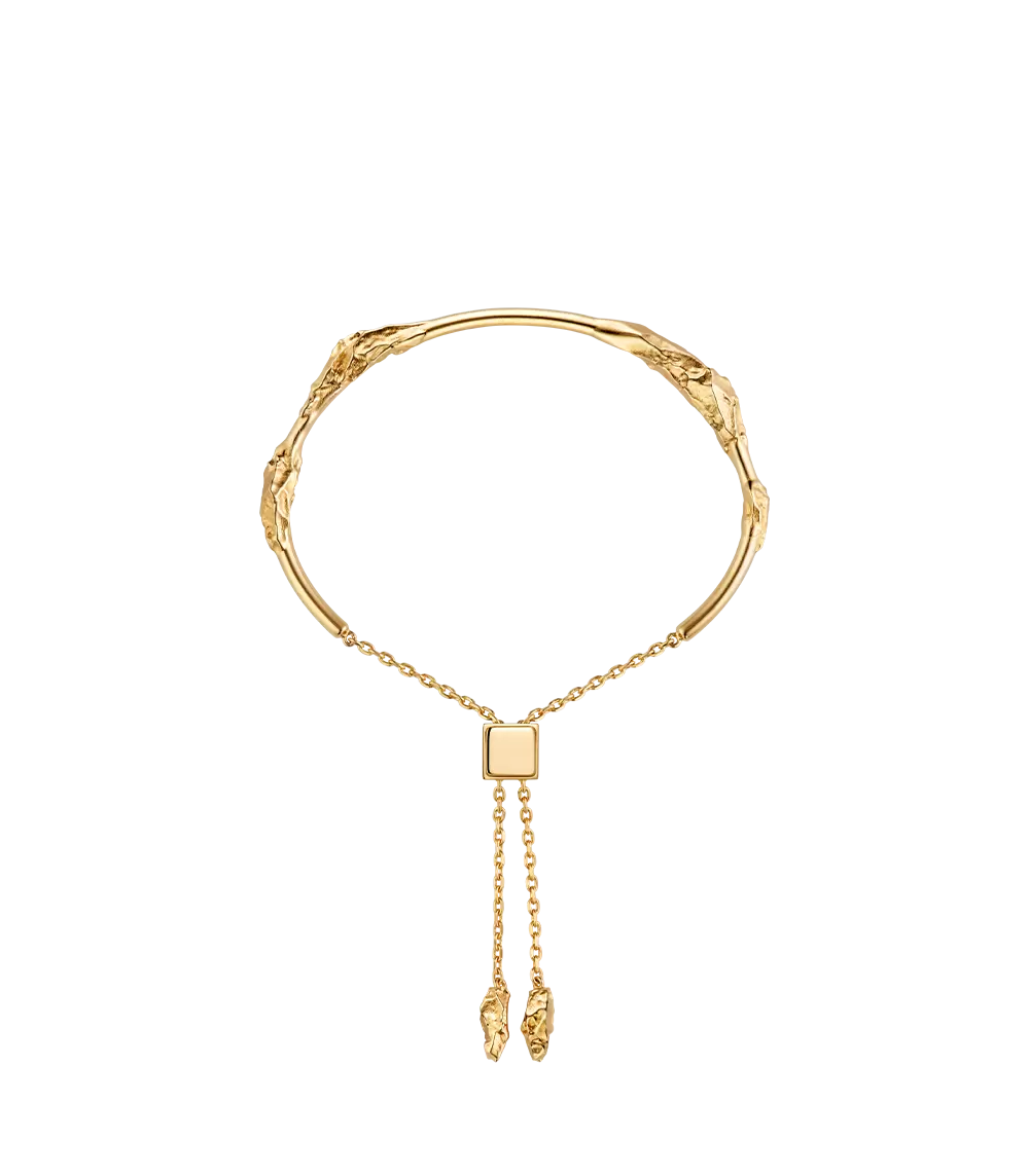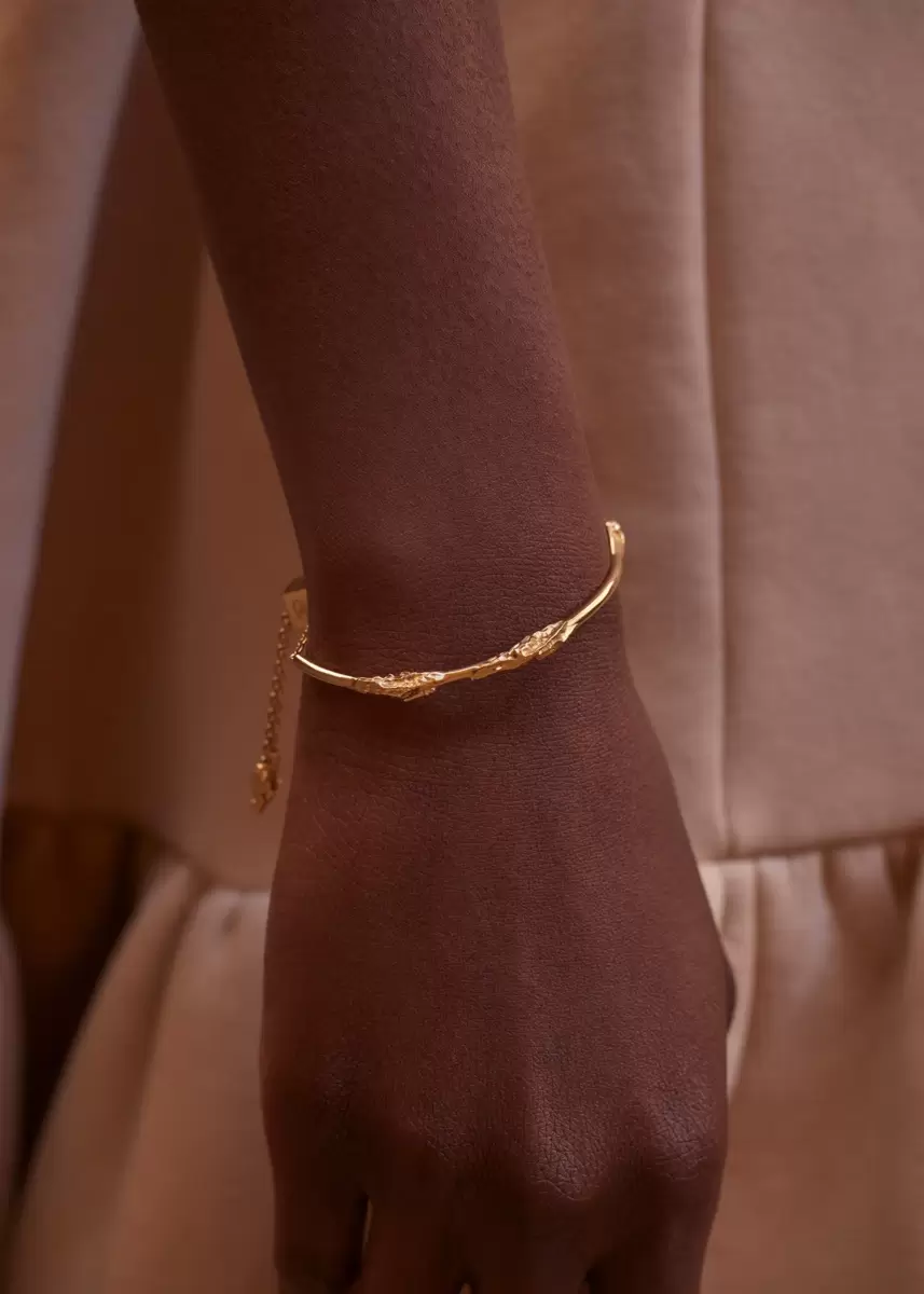 All the subtlety and elegance of a bangle that delicately encircles the wrist. Its design boasts emerging rock effects scattered along the flowing lines of the bracelet.